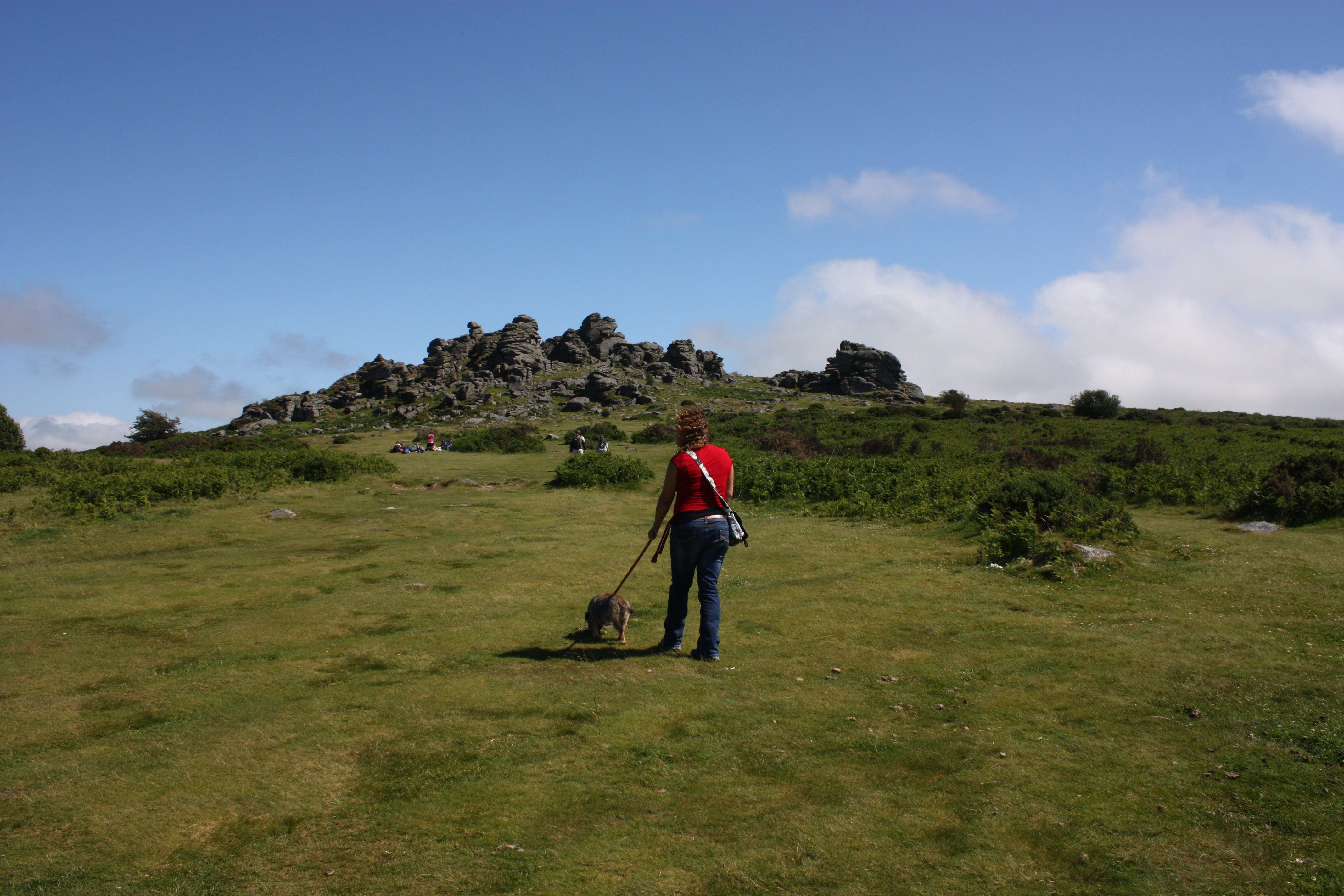 We got my car back, headed home for a quick snackette and situation re-appraisal and around 2pm set off for the moor again. This was supposed to be a treat for him, his first trip to one of Nina’s and my favourite places. I thought how sweet of him to squidge his six foot three into the back of my tiny Sadie, leaving Nina and I to chunter on, as the glory of the south Dartmoor hills opened up on the horizon. Dido and Daisy his new best friends gazed adoringly at him as he slipped off to sleep and only woke as we thundered over the cattle grid and got our first view of the lovely granite outcrop that is Haytor.