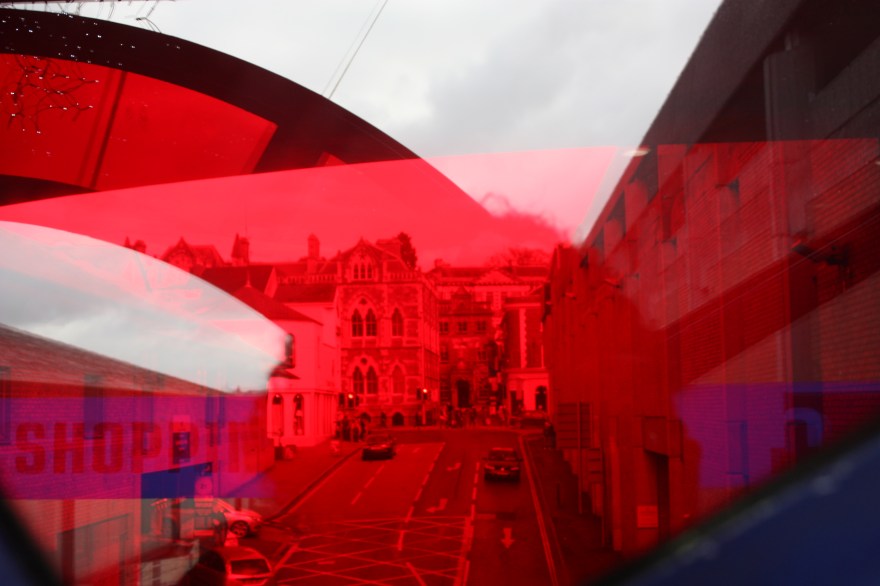 and I don’t know how I made this mess, I was on a footbridge with windows, the red is reflected from behind and a bit of my reflection is in there too!