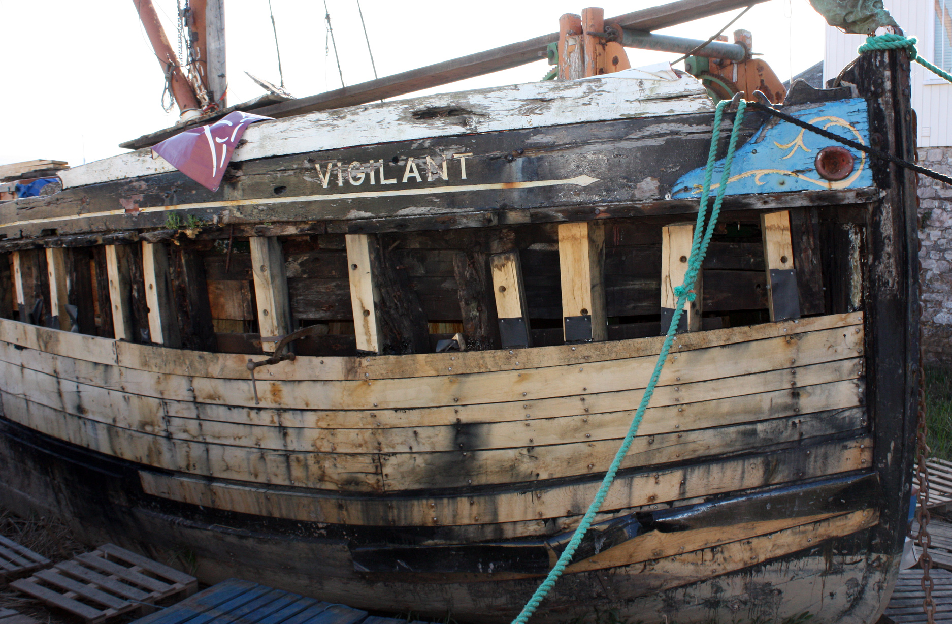 If you have been following Lucid Gypsy for a while you’ll know that I’ve been posting about the restoration of a Thames barge, Vigilant, here in Exeter at Topsham Quay, who knows, perhaps Charles even sailed on her. Yesterday I popped down to check her progress.
