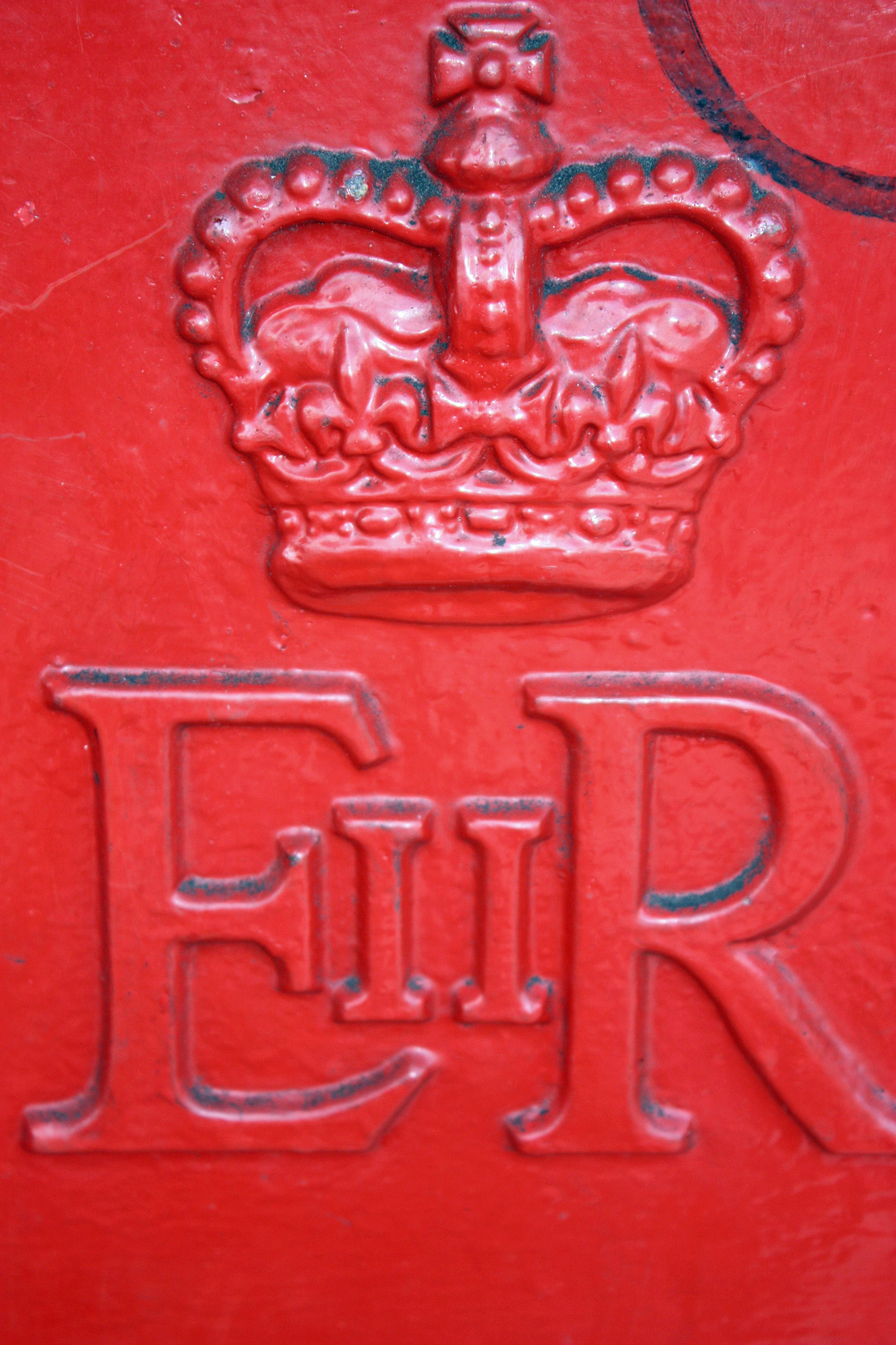 The Royal Mail symbol, to be found on bright red post boxes all over the UK. It’s current incarnation has the initials E11R, Elizabeth the Second reigns, but earlier ones have GV1R and even VR can occasionally be found.