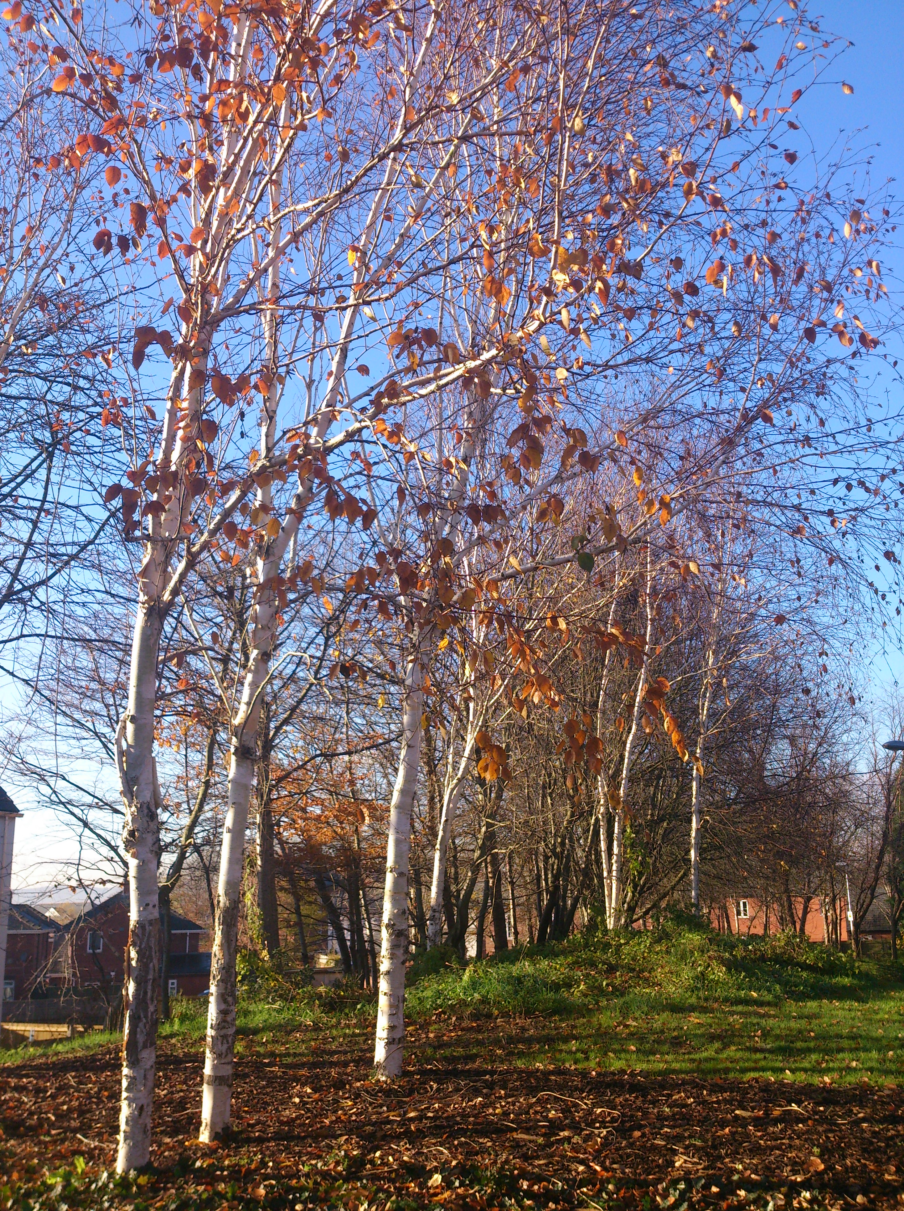 Today began with horrid fog so I was happy that the sun came out in time for my lunchtime walk. I decided to go out of the back gate from work, and across the road to where a childrens play area leads to a very peaceful area of houses. I rarely see a soul there, but there are lovely avenues of trees and a couple of very big, old ones that have been kept thank goodness. This time I noticed a gap between two houses that I’d never seen before, so I crossed and went through. It led to a curved footpath with trees either side, so I walked the hundred metres or so until it opened up to a grassy area with more houses across the other side. Then I remembered Chittle Chattle’s hundred steps walks, I haven’t done one for a while, so I turned back the way I came and counted my hundred. This is what my phone and I saw.