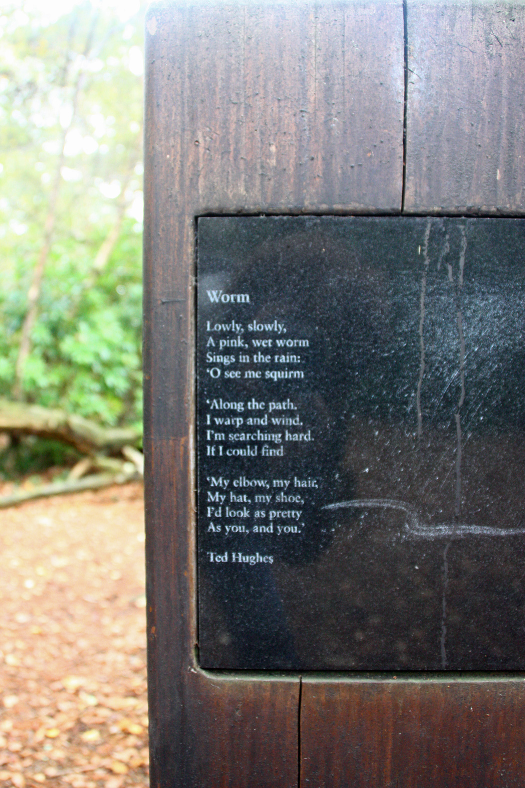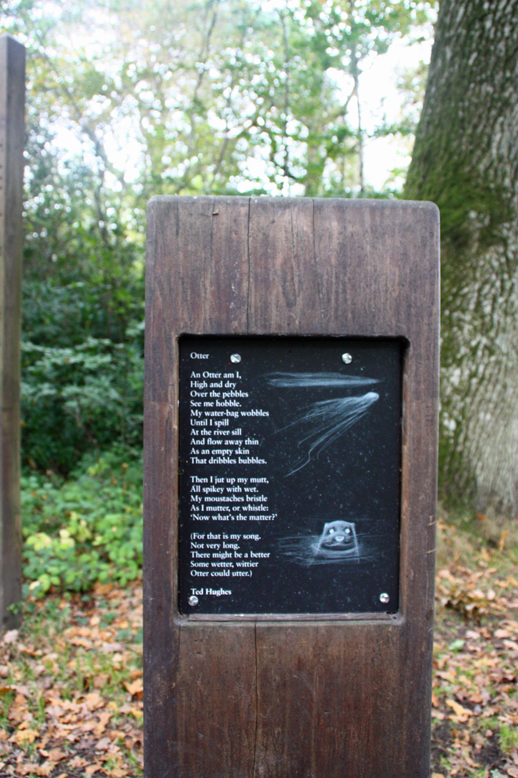 Some of the Ted Hughes poems around the trail are An Otter, A Cormorant, Nightjar, Trees, The Lake, The Kingfisher, The Thought-Fox, and Dragonfly. I didn’t see all sixteen, so I’ll have to go back!