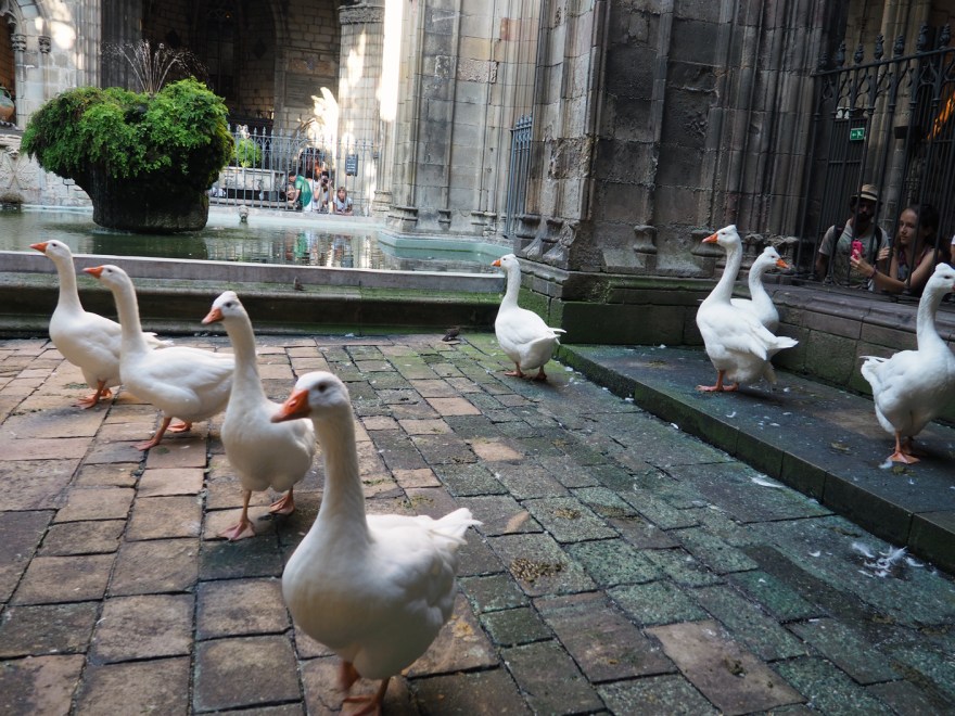 Yes, geese, thirteen of them, representing the age of Santa Eulalia when she was martyred in Roman times.