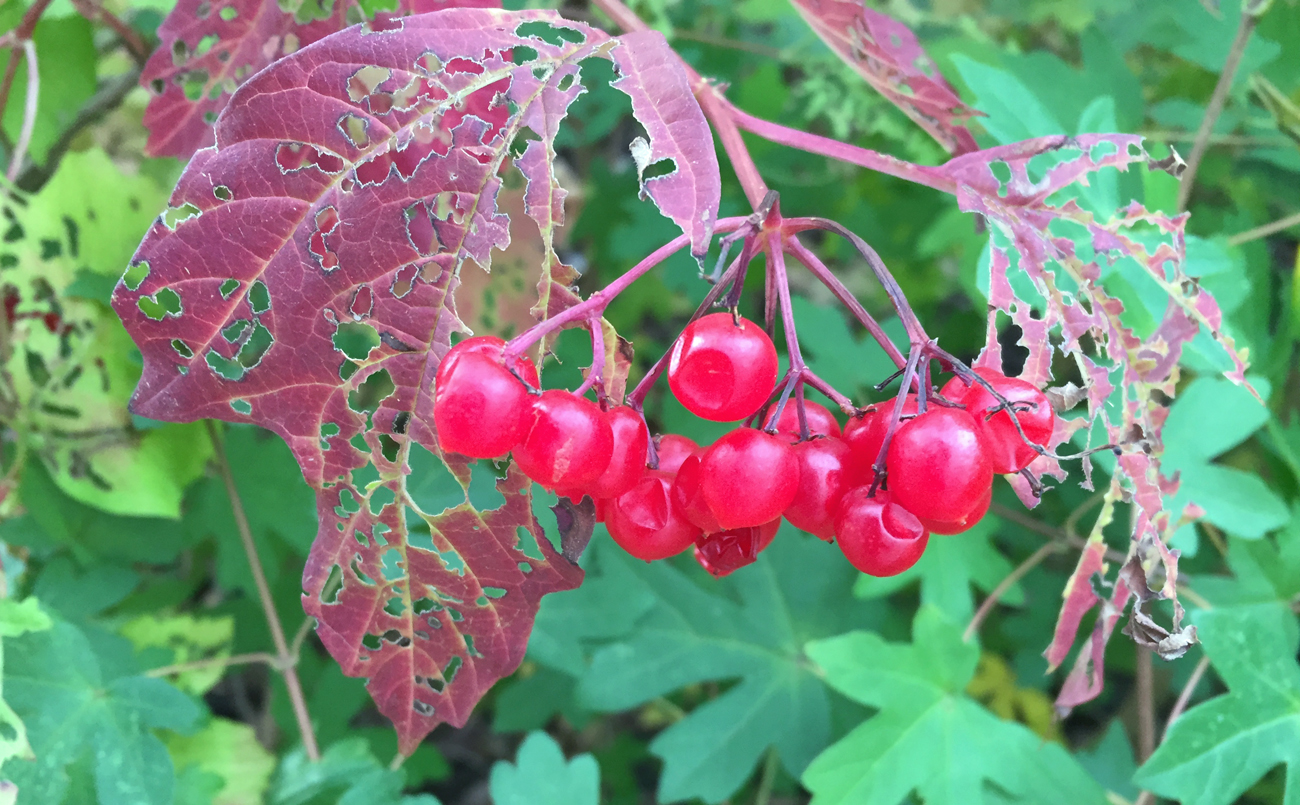 I don’t think the berries above are edible, just rather pretty cascading between the remaining lace of the leaves.