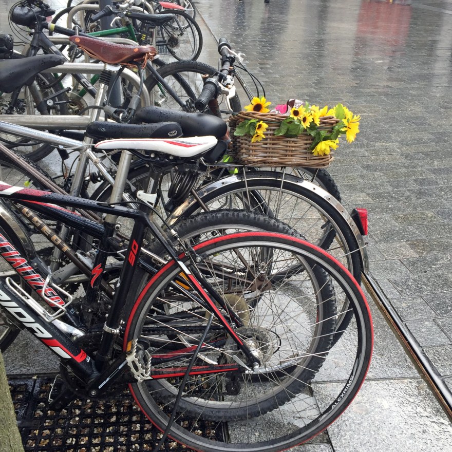 I’m always pleased to catch a bike photo, this one was taken in town on Friday after the rain. I love the little basket of artificial flowers bringing a touch of sunshine.