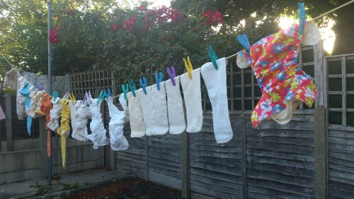 How wonderful to see real nappies on a washing line instead of hideous disposables going to landfill. They aren’t like the terry squares that my generation of mums used, instead they are funky and bright with poppers and made from bamboo, cotton and microfibre. Some have built-in waterproof covers others have separate waterproof wraps. It has been estimated that using them can save around £400 on a first baby and £500 on a second, even with laundry costs. Just imagine the benefit to the environment!
