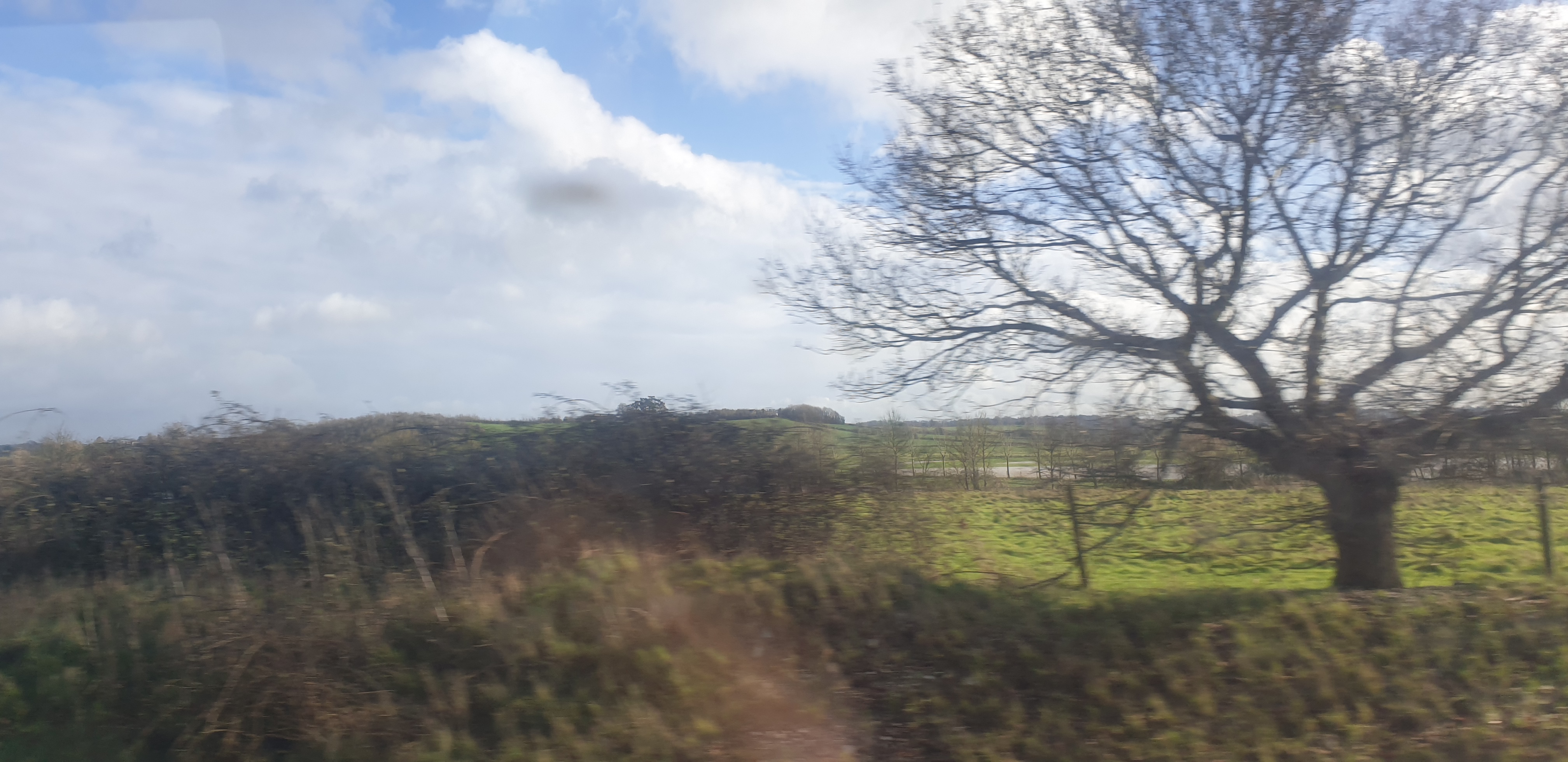 On Thursday I went east by train, across the Somerset Levels, sorry the photos are blurred.