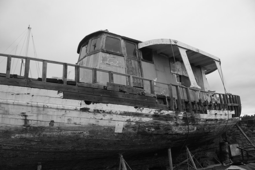 An official letter is pinned to it stating that they will dispose of it unless the owner removes it by a date that has now passed, and they will charge for doing so. Someone has been working on its restoration, just not as quickly as the council would like, it’s a massive money pit of a project. I talked to one of the boat owners and he said that the mooring fees had been paid and apparently it’s a trawler, obviously very old. Who knows what its history is?I believe it would be beautiful once done, surely the purpose of a boat yard is to mend and build boats? Bureaucracy drives me mad.