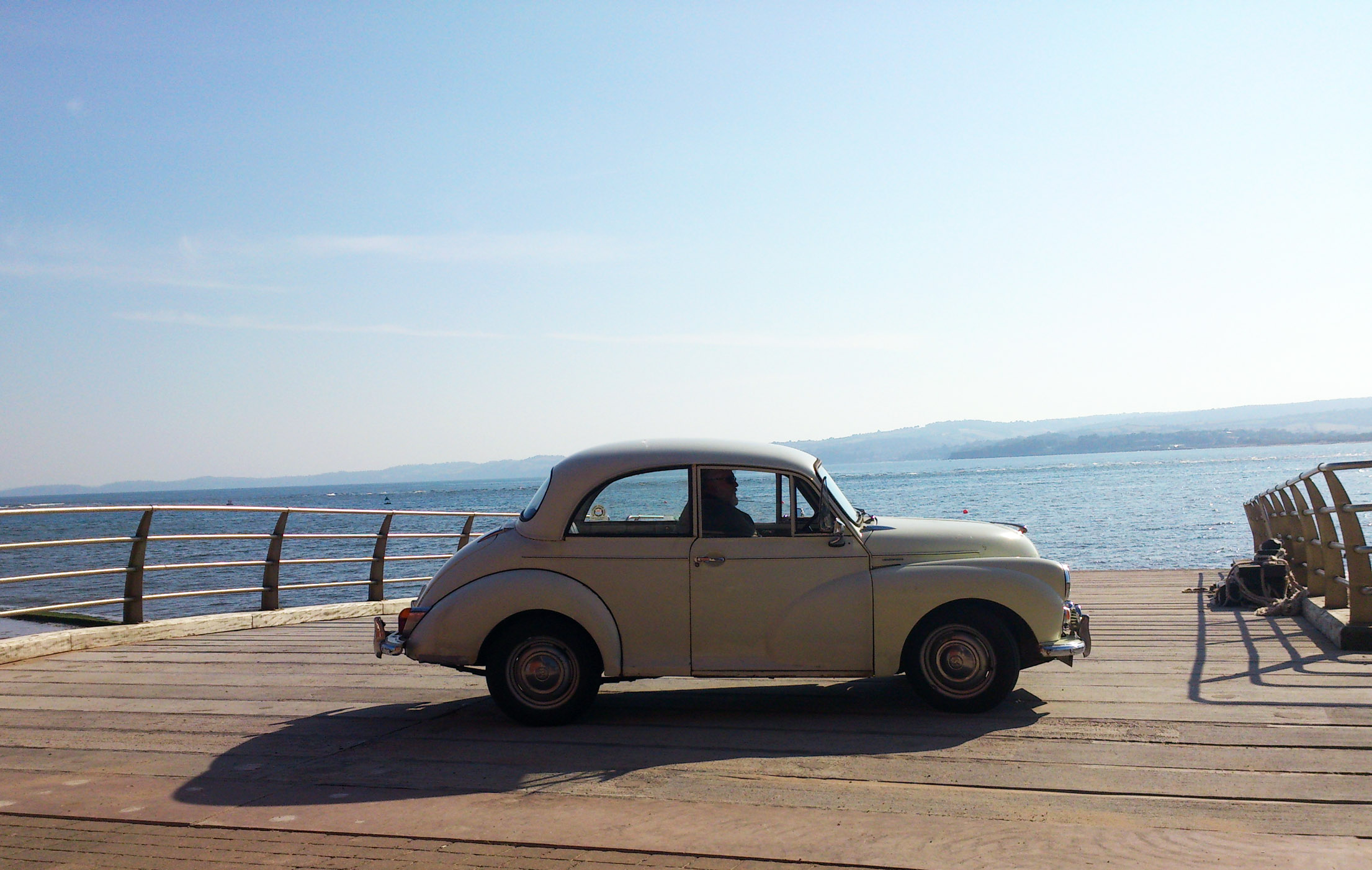 Morris Minor’s were produced in Britain from 1948 to 1974, as an economy vehicle. There were several versions, saloons, convertibles, an estate with wooden trims and functional little trucks. More than a million and a half were built and they still have huge following. There is an owners club with events and rallies all over the country. I captured this one with my phone camera on Exmouth sea front last night, it was lovely, a real treasure from the days when car engines were simplicity, not a gadget to be seen.