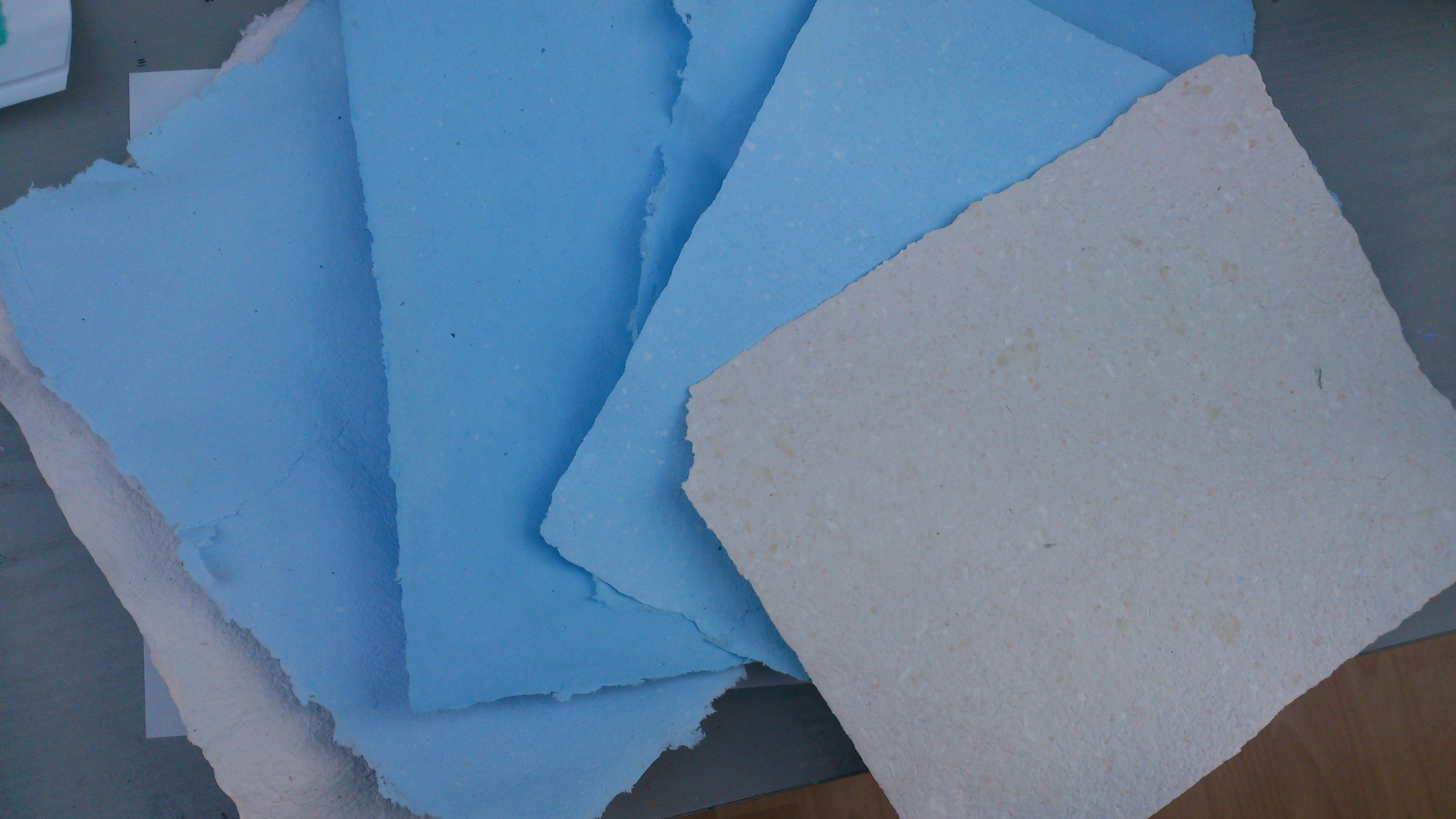 Here is a step on the way, pulping recycled paper in a food processor with paint to add colour.