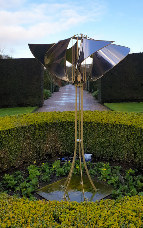 It’s been a few years since I last went to the winter sculpture trail at RHS Rosemoor, so I jumped at it when my friend sue suggested it. It was a bit of a bleak day weather wise, grey and overcast and with cold showers that quickly sent us in for coffee and mocha cake. Flashes of bright winter sun and rainbows kept us smiling, as did the sculpture.