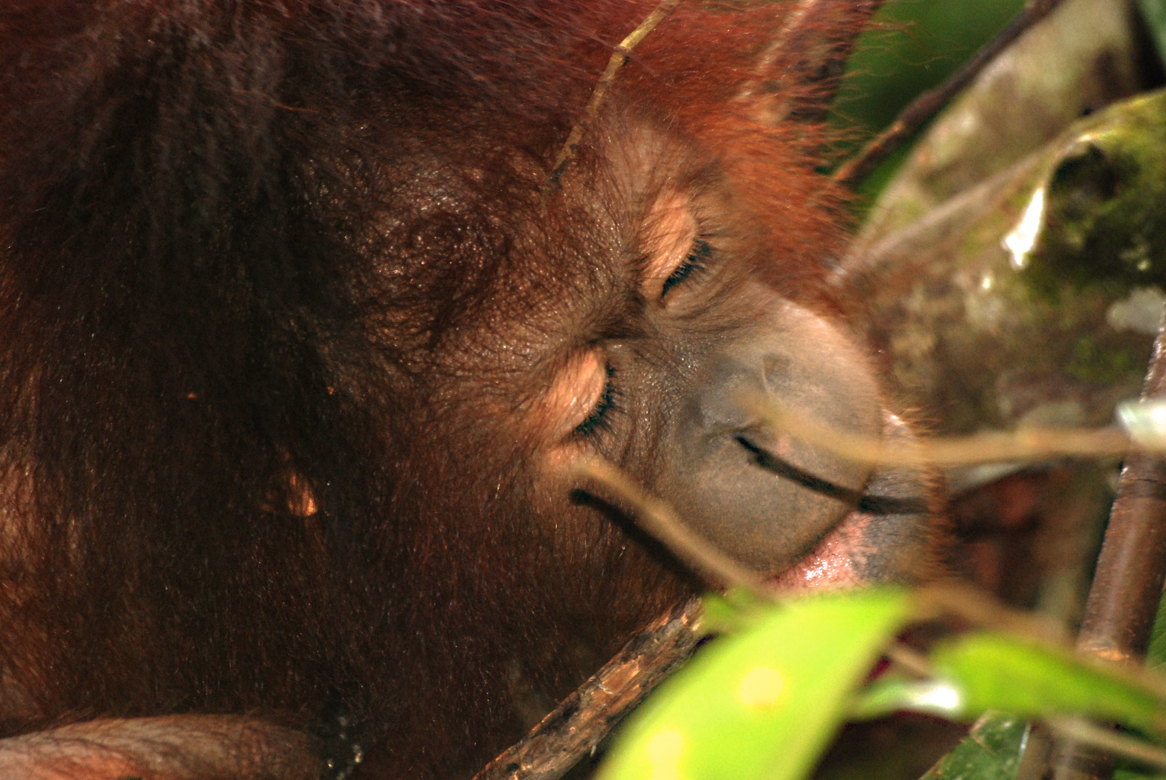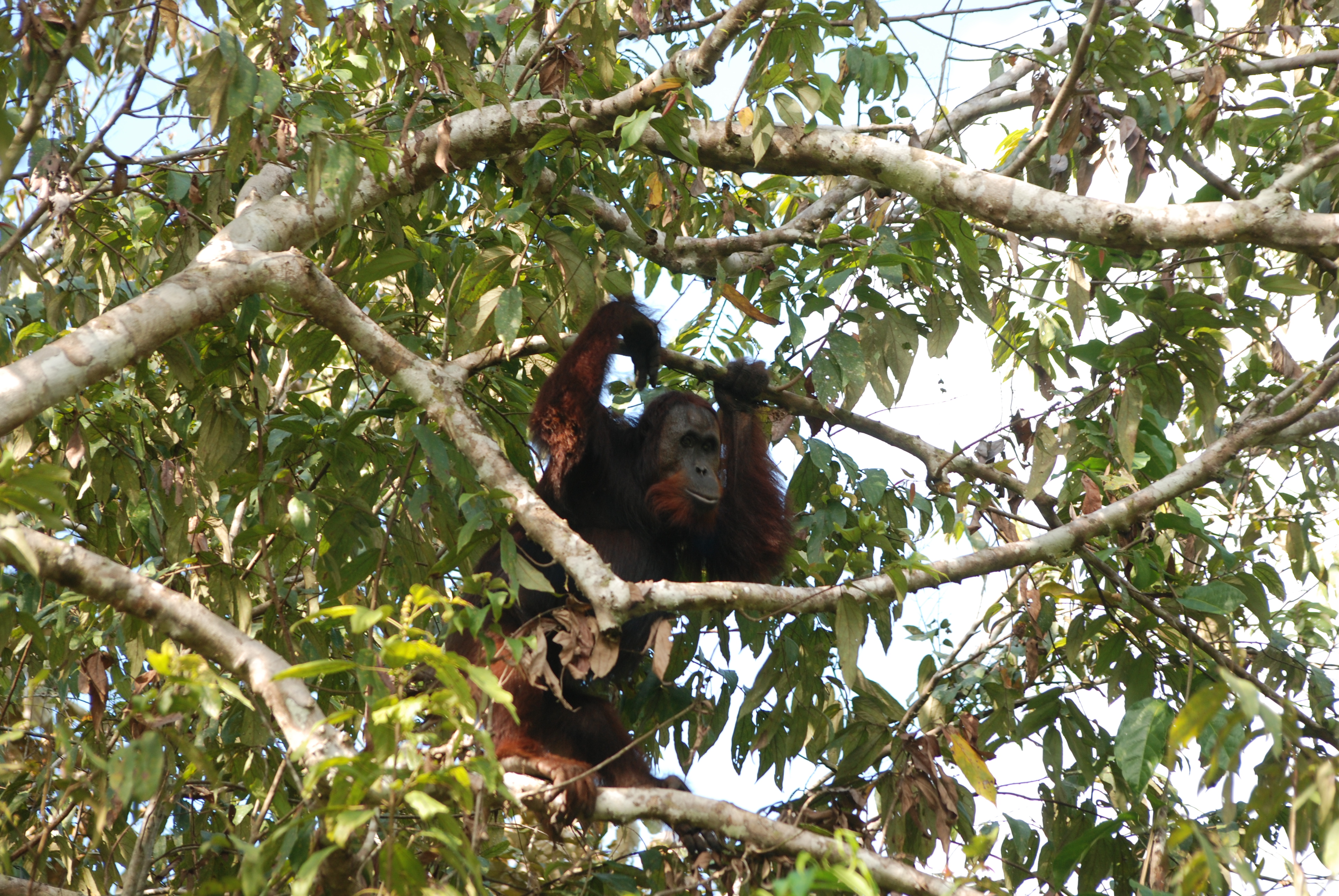 Approaching sunset found us on the Kinabatangan. The river provides a corridor of pristine natural forest and there we were privileged to see a couple of really wild Orangs. These wild ones are a rich mahogany shade and I asked Khaled why.
