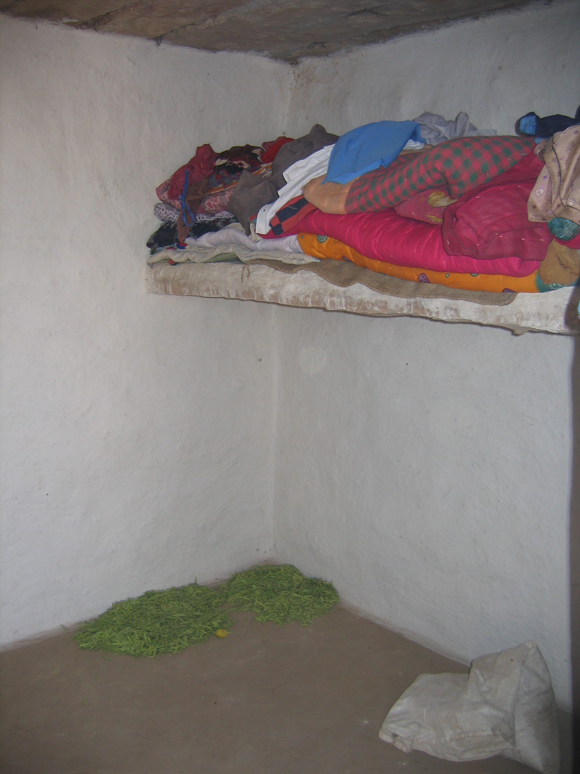 Outside, another charpoy bed was under an open sided, four post shelter. In all there were three adults and seven children, the sum of their possessions would have fit under my kitchen sink but they were so happy and proud.