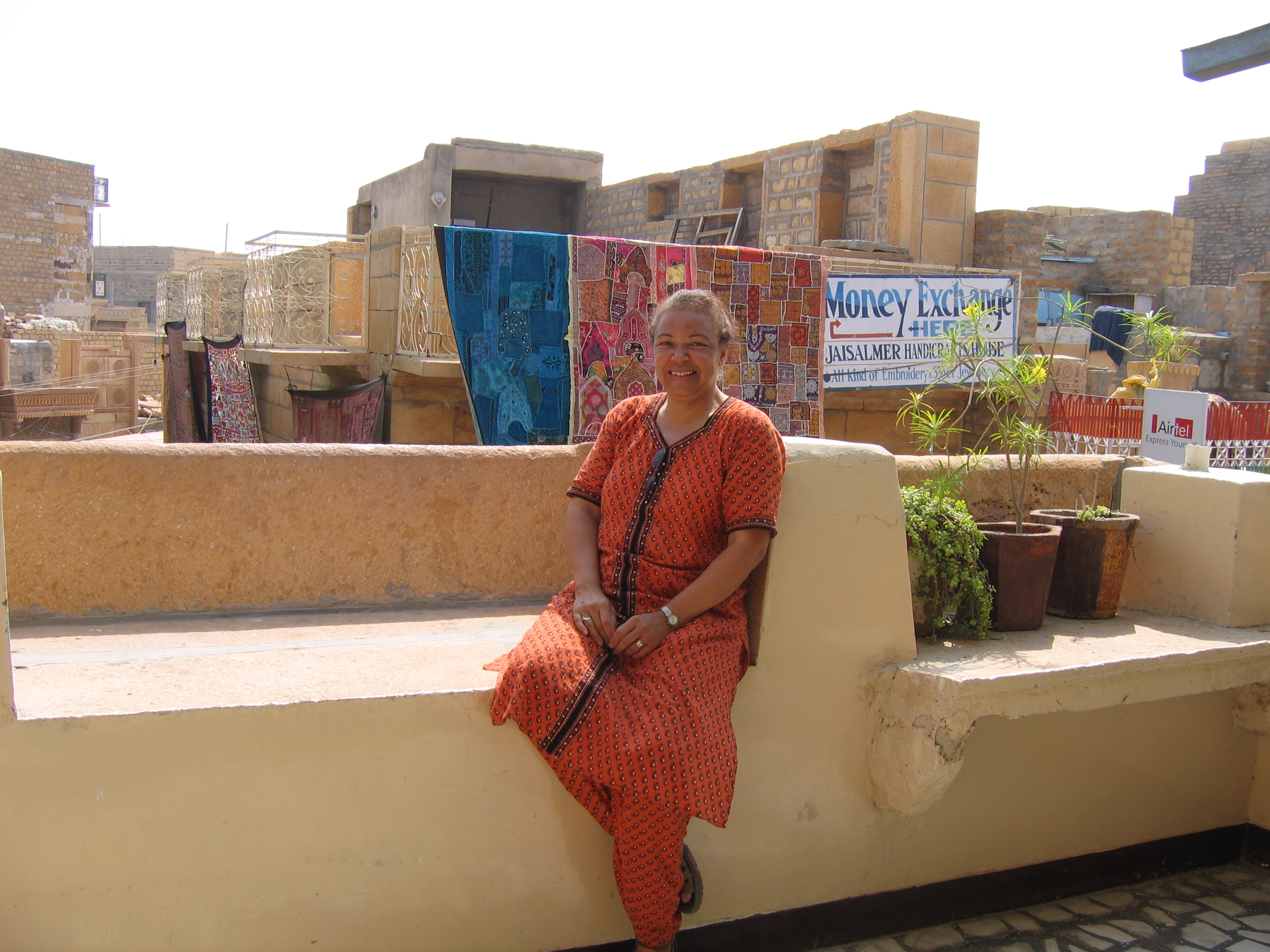 Our last stop before Jaisalmer was when we saw some women working in a field, Magan thought we wanted to take more photos, but before he noticed, I started to stride across to talk to them. I’d gone a little way when I heard him call me so I turned to wave and carried on. He called louder and sounded quite panicky, but because he was such a mother hen worrying about his Western chicks, I ignored him. He ran after me and looking like he was going to cry, pointed at the bottom of my salwar kameez. I was covered in hideous, prickly, seed heads that had buried themselves into the fabric and were agony to remove. He was mortified, poor man.