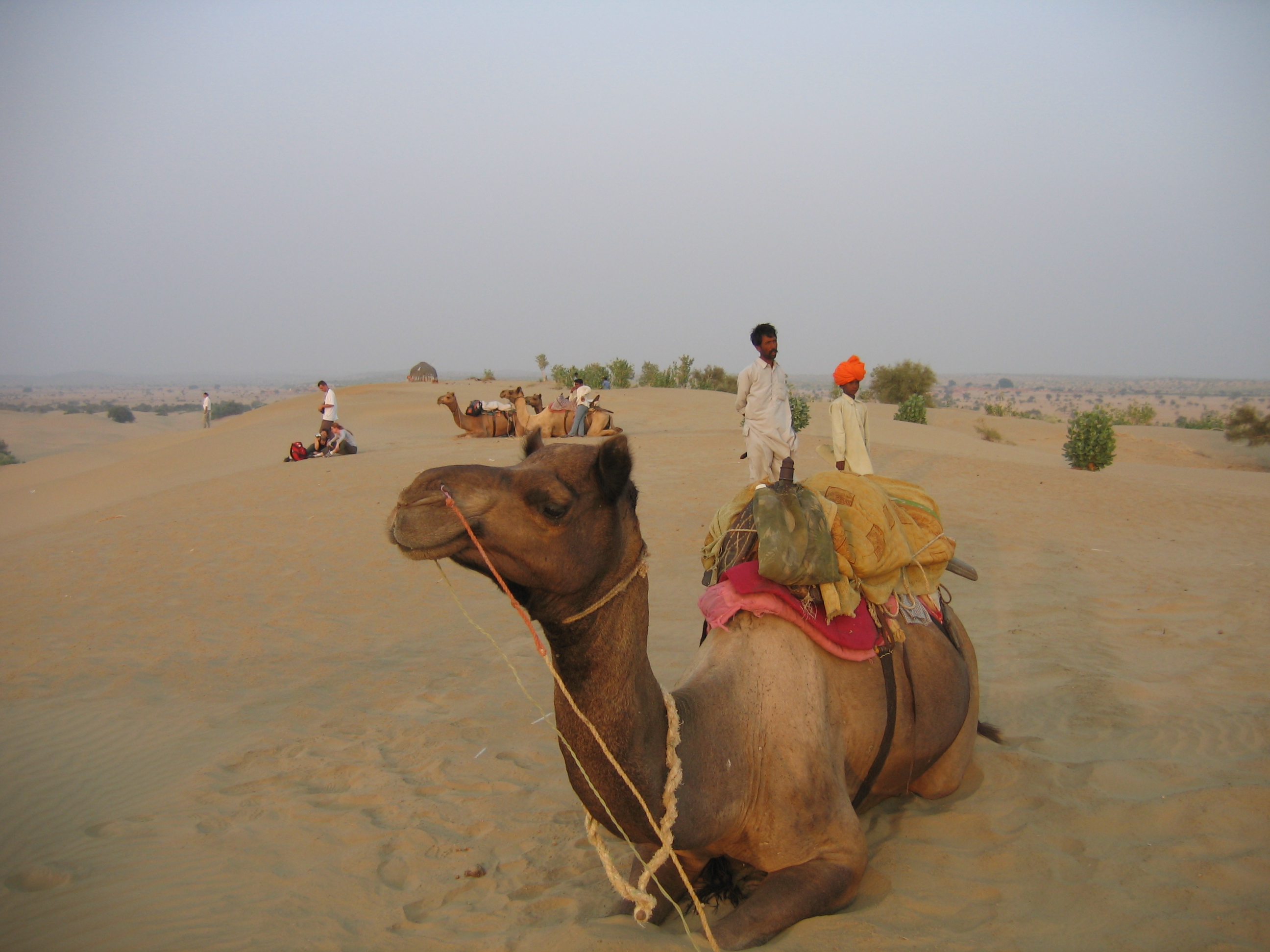 The good Mr Singh had other ideas, and rounded up travelling friend and I into our jeepy thing, where our body temperature gradually normalised. Half way across the desert the little huts started to appear occasionally, with boys persuading a goat or two with sticks. A government restaurant was our lunch venue with an indifferent Thali – because it contained the dreaded gobi – and apple juice, for one hundred rupees. More desert road, and just as our eyes were growing heavy, looking at beige-gold sand, Magan slowed down to negotiate his way through a crowd of people. There was nowhere, no homes, enclosed land, McDonalds or anything, but somehow around twenty people had appeared, to argue over who had run over, and killed, a camel. Someone had to compensate the owner and somehow it had to be moved. It was macabre, just like hearing sirens on the motorway.