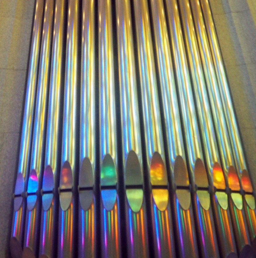 A glorious spectrum of colour permeates these organ pipes at Sagrada Familia.