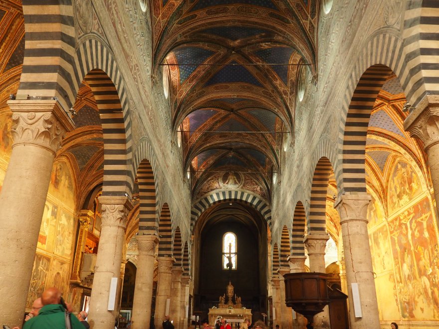 I’d more or less abandoned the idea of going to San Gimignano while in Florence, it just seemed we’d be trying to pack too much in to a week. A late change of plan made it possible and The Duomo, Santa Maria Assunta stands out as one of the high points of my visit to Tuscany. The walls are covered with 14th century frescoes of the Old and New Testaments, that are truly stunning. Here you can see a glimpse of fresco and some of the ten round and four octagonal columns.