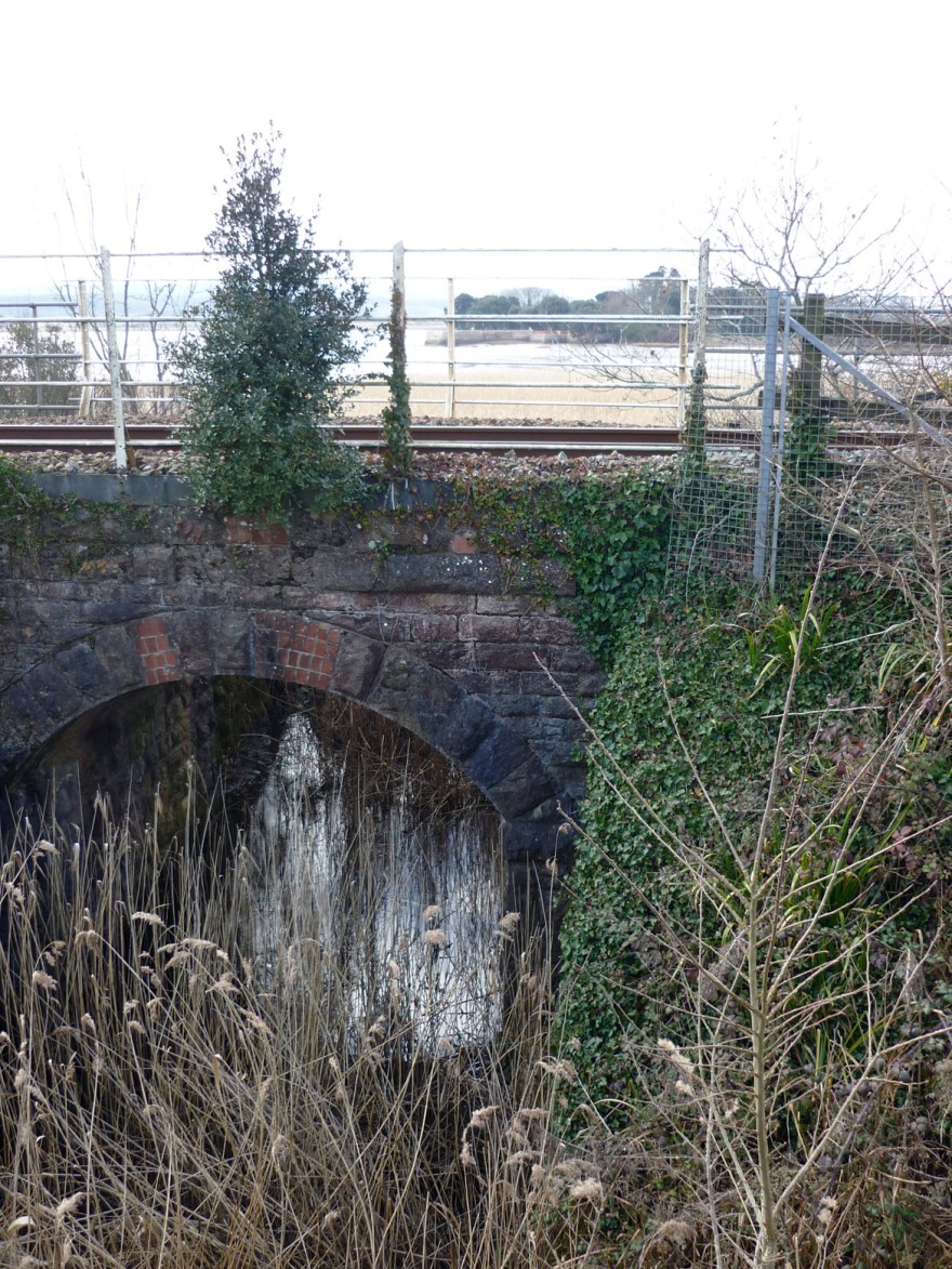 I’m striding along now, parallel to the railway line that I travelled on the day before, taking two of my grandchildren to the beach at Exmouth. The old bridge spans an area with an inlet that probably floods at times.